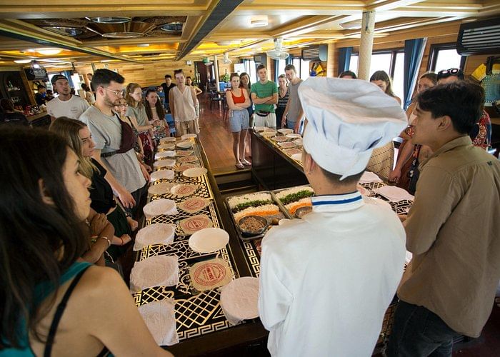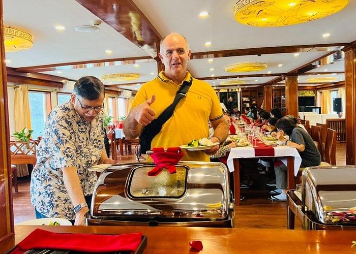 Step aboard the most majestic cruise in Ha Long Bay and let every moment take your breath away. Wander through the mystical beauty of Surprise Cave, feel the timeless rhythm of life in Cua Van fishing village, and glide gently into the enchantment of Luon Cave.