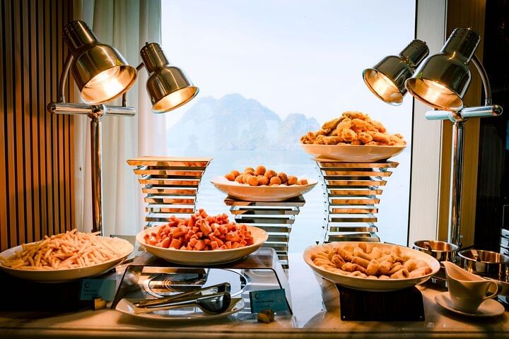 Luna Halong Cruise sets the standard for 5 star luxury day cruises in Ha Long Bay, blending exploration with indulgence. Step aboard to discover a one of a kind 360 degree double sundeck, two sophisticated restaurants accommodating up to 550 guests, and Vietnam’s first outdoor glass-bottom pool. With world class amenities, refined dining, and vibrant onboard entertainment, Luna Cruise promises an extraordinary journey through the awe inspiring landscapes of UNESCO listed Ha Long Bay, where style and comfort meet unforgettable experiences.