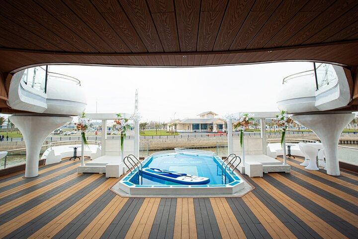 Luna Halong Cruise: a 5-star day trip with a 360° sundeck, glass-bottom pool, fine dining, and stunning Ha Long Bay views.