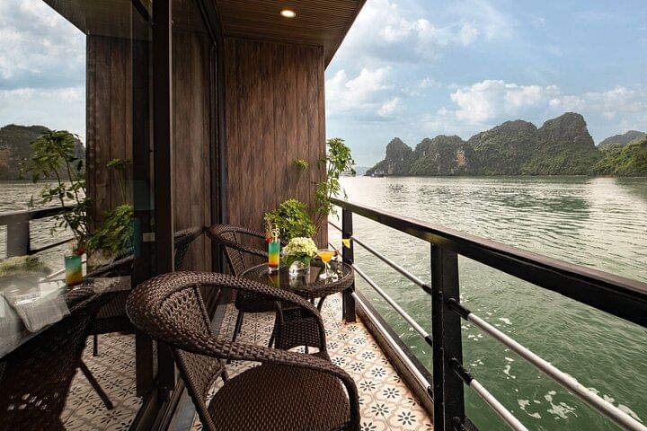 Doris Cruise is a 5-star luxury trip with Ha Long Bay’s first onboard pool and private balcony cabins, offering an exclusive route for swimming, kayaking, and stunning views.