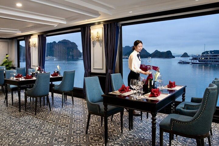 Doris Cruise is a 5-star luxury cruise, setting itself apart as the first in Ha Long Bay to feature an onboard swimming pool. Every cabin is designed with a private balcony overlooking the ocean, offering guests uninterrupted views of the bay’s breathtaking scenery. With exclusive itineraries unlike any other, Doris Cruise invites travelers to explore the hidden beauty of Lan Ha Bay and Ha Long Bay. Highlights include swimming and kayaking at Ba Trai Dao Islet, discovering the Dark & Bright Cave, and sailing past Con Vit Islet, Thumb Islet, and Gia Luan Harbor. Experience a journey of elegance, adventure, and unforgettable moments on the sparkling waters under golden sunshine.