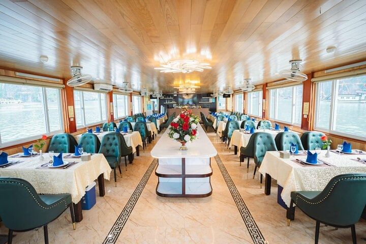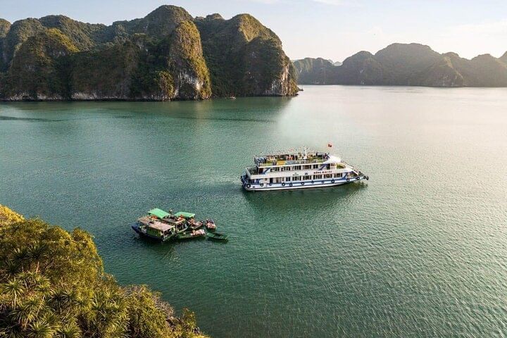 Discover the very best of Ha Long Bay on a deluxe full-day cruise that blends comfort, adventure, and breathtaking scenery. Begin your journey meet directly at Tuan Chau Marina before setting sail across emerald waters and towering limestone karsts. Explore the iconic Surprising Cave, kayak or ride a bamboo boat through the tranquil Luon Cave, and relax or hike to the summit of Titov Island for sweeping bay views. Savor a freshly prepared set-menu lunch onboard, then unwind with a sunset tea party on the sundeck as golden light bathes the bay. This premium day experience is the perfect way to immerse yourself in the natural wonders of Ha Long Bay.