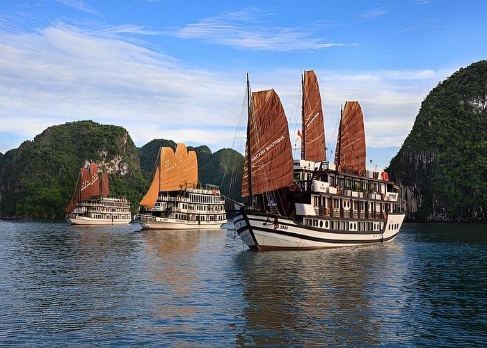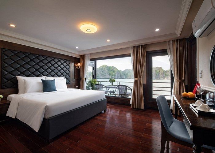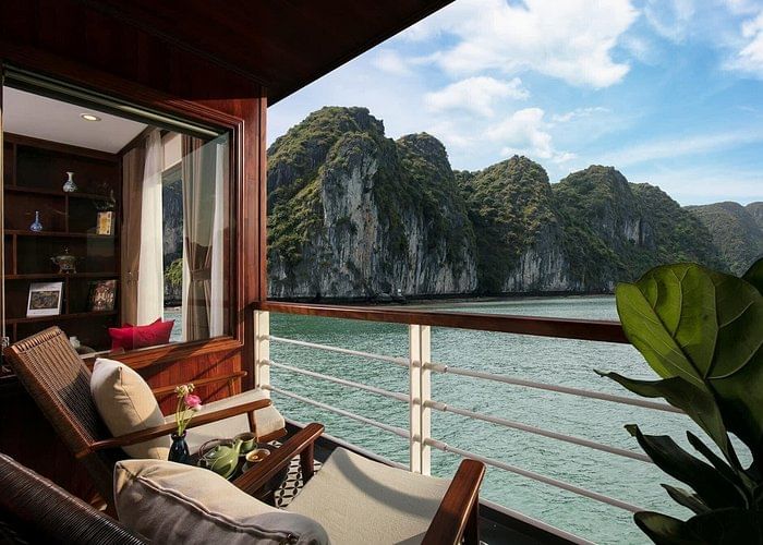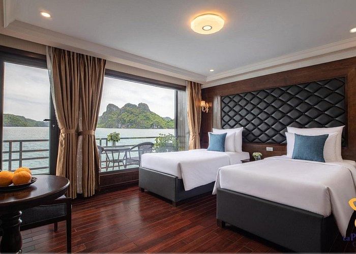 5 Star Cruise. Highlight: Cruise is designed with ensuite cabins which are with the private balcony, Visiting both part of Halong Bay and Lanha Bay, All meals are included, Caves, Kayaking, Sunset Party, Cooking Class, Taichi, ... Pick and drop off from hanoi old quarter
