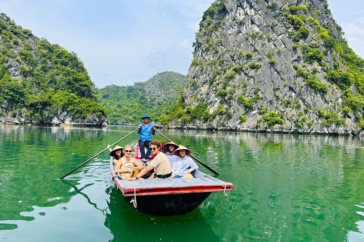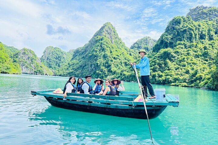 Sail on a luxury catamaran from Hanoi, with stunning limestone views, gourmet lunch, and kayaking or swimming for an unforgettable day in Halong and Lan Ha Bay.