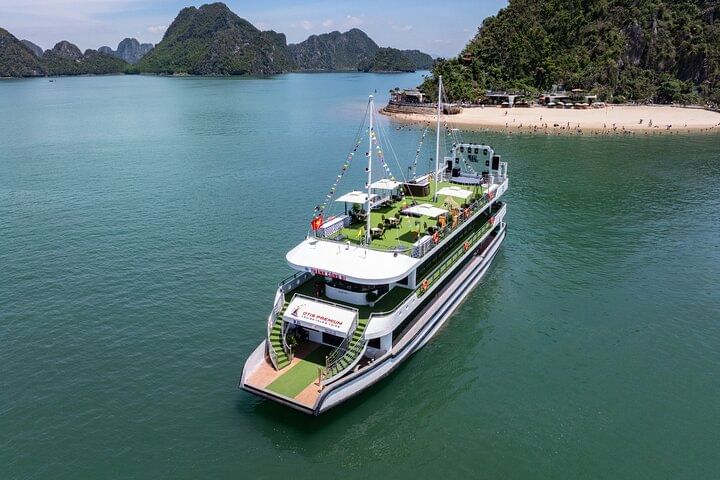 Experience the magic of UNESCO World Heritage-listed Halong Bay on this unforgettable one-day luxury cruise. Marvel at the breathtaking limestone karsts and emerald waters as you glide through the bay’s most scenic areas. Explore the magnificent Sung Sot (Surprise) Cave, then climb to the summit of Ti Top Island for sweeping panoramic views. Savor a delicious buffet lunch on board, and enjoy kayaking or a bamboo boat ride to immerse yourself in the tranquil surroundings. As the day winds down, relax with a sunset party on deck — the perfect finale to a day of natural beauty, adventure, and serenity.