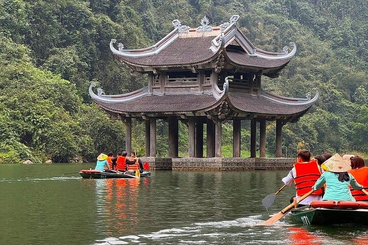 Small-group tour with premium transfers, a local family visit, lunch, Hoa Lu, Trang An, and a scenic bike ride through villages and rice fields.