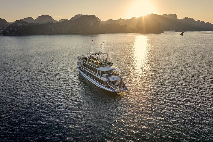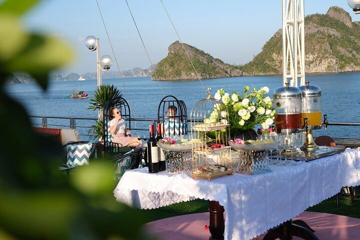 Perfect for travelers short on time, this luxury Ha Long Bay day tour offers an upscale yet affordable way to experience the bay’s legendary beauty. Travel in comfort with a round-trip limousine transfer from Hanoi’s Old Quarter to Tuan Chau Harbor, then step aboard a stylish cruise designed for relaxation and discovery. Visit iconic highlights including Titop Island, the awe-inspiring Surprise Cave (Hang Sung Sot), and glide by kayak through the tranquil waters of Hang Luon Cave. Savor a lavish buffet of more than 30 dishes before unwinding at a sunset party with red wine against the stunning backdrop of Ha Long Bay. Blending adventure, culture, and relaxation, this all-in-one day trip is the perfect way to immerse yourself in Vietnam’s most famous natural wonder.