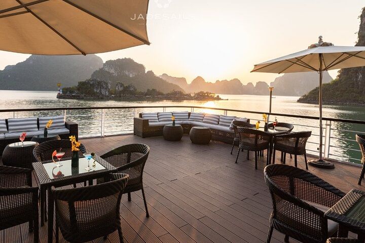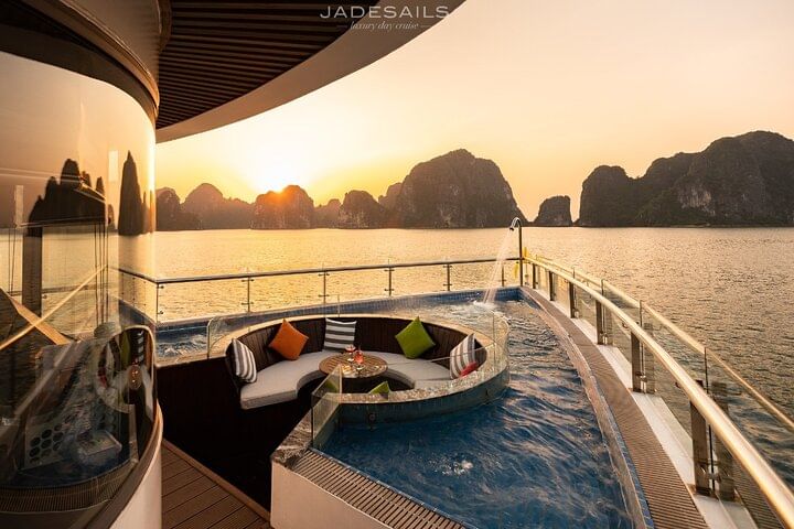 JadeSails Luxury Day Cruise delivers a stylish escape from Hanoi with limousine transfers, gourmet dining, and kayaking—perfect for a luxurious day on Lan Ha Bay.
