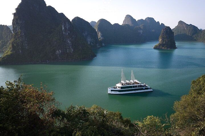 Escape the bustle of Hanoi and embark on the JadeSails Luxury Day Cruise, the most stylish way to explore Lan Ha Bay. Travel in comfort with a limousine transfer, then step aboard the elegant JadeSails, where modern design meets Vietnamese charm. Indulge in a gourmet lunch, relax on the spacious sundeck, and soak in the panoramic views of emerald waters and limestone karsts. Enjoy kayaking, swimming, or simply unwinding in luxury. This unforgettable day tour blends comfort, adventure, and breathtaking scenery.