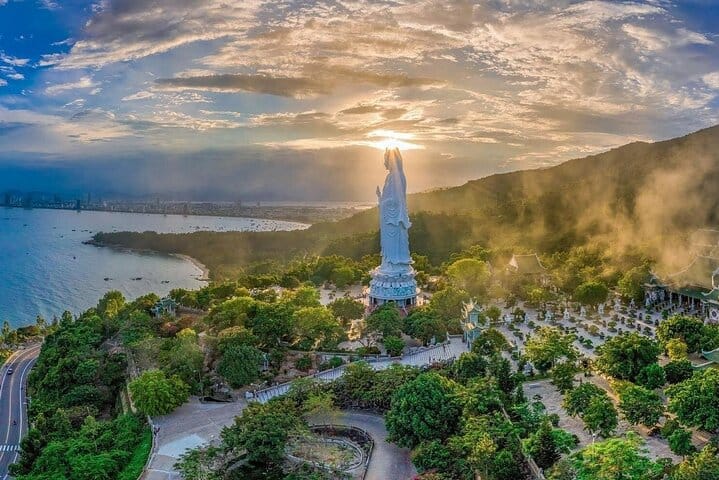 Experience the highlights of Central Vietnam on our Da Nang – Monkey Mountain – Marble Mountains – Hoi An by Night luxury tour. Your journey begins at the iconic Linh Ứng Pagoda, home to the towering 70-meter Lady Buddha statue, where sweeping ocean and city views set the tone for an unforgettable day. Continue to the Marble Mountains, exploring ancient caves, pagodas, and viewpoints before visiting the renowned Non Nuoc Stone Carving Village to witness master artisans at work.