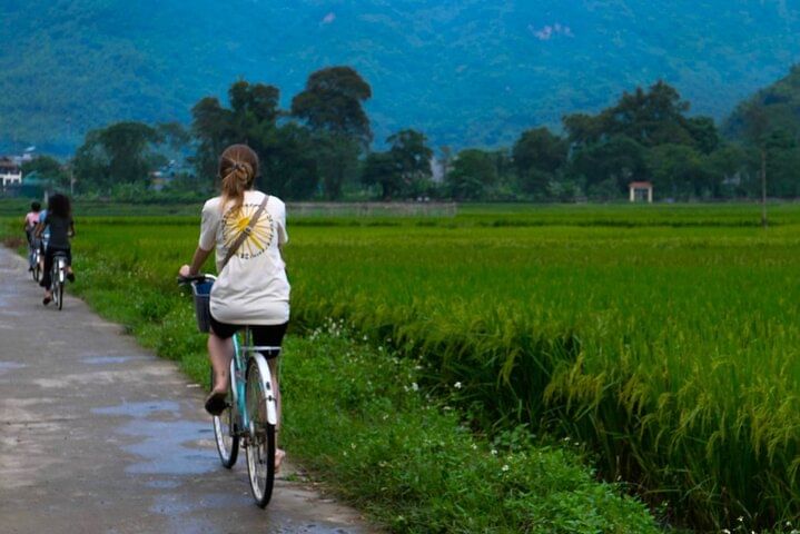 Overnight trip from Hanoi to Mai Chau with village visits, mountain walks, local meals, and a stay in a bungalow or stilt house amid peaceful rice fields.