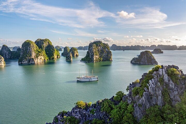 Escape the crowds of Ha Long and uncover the pristine beauty of Bai Tu Long Bay on a 2-day Treasure Junk Cruise. Sail among towering limestone islands, hidden caves, and tranquil waters. Enjoy kayaking, swimming, and visiting local fishing villages for an authentic glimpse of coastal life. Savor freshly prepared Vietnamese cuisine onboard and relax in comfort. An overnight stay on the cruise ensures a memorable journey into Vietnam’s untouched seascape.